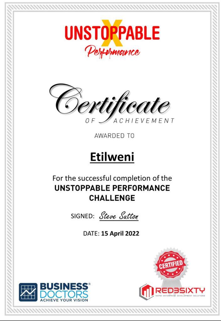 Unstoppable Performance Certificate